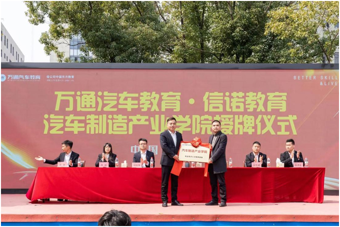 2024年3月12日,在杭州萬通汽車教育舉行汽車制造產(chǎn)業(yè)學院授牌儀式。出席本次授牌儀式的有中國東方教育集團創(chuàng)就業(yè)部經(jīng)理趙輝、杭州萬通學校校長助理鄭陸保、信諾教育校長王青海等。信諾教育授牌萬通汽車教育為校企合作人才定點培養(yǎng)基地,愿助力萬通汽車教育實現(xiàn)“辦世界很好的職業(yè)教育”的夢想。